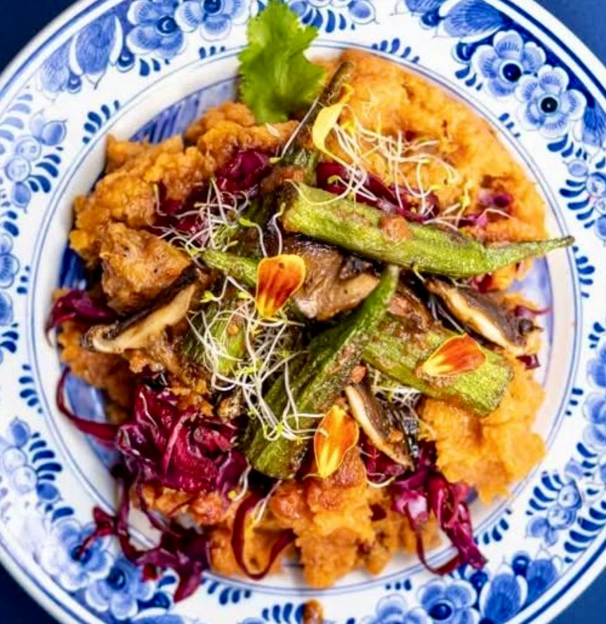 Phoebe Amalia Dunn, Cheffe végane anglo-nigériane à la tête du restaurant L’Embuscade Pigalle à Paris, signe une gastronomie végétale libre, généreuse et poétique, où chaque plat devient une expérience sensorielle et un acte d’amour.